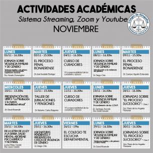 Agenda de actividades académicas de noviembreCompartimos el detalle de las capacitaciones que se brindarán vía streaming y zoom, durante este mes. LEER MÁS |