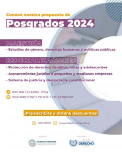 Preinscripción a Posgrados con descuentos en la Facultad de DerechoLas propuestas inician en abril de 2024 y se aceptan inscripciones hasta el 5 de febrero del mismo año. LEER MÁS |
