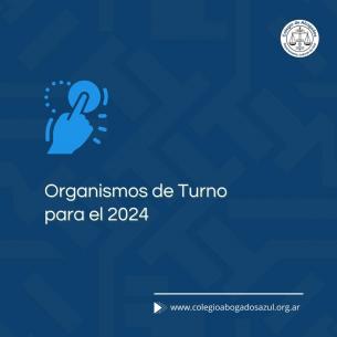 Organismos de turno para el 2024Mediante el Acuerdo Nº 4134 la Suprema Corte de Justicia dispuso, en base a las propuestas formalizadas por las Cámaras de Apelación en lo Civil y Comercial, de Garantías en lo Penal y en lo Contencioso Administrativo, los turnos para el año 2024. LEER MÁS |