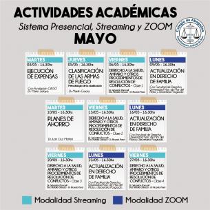 Agenda de actividades académicas de mayoCompartimos el detalle de las capacitaciones que se brindarán en forma presencial, vía streaming y zoom, durante este mes. LEER MÁS |