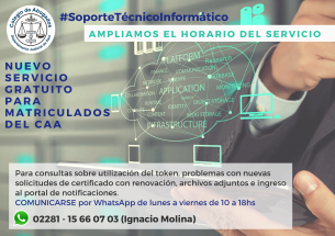 Ampliamos el horario de atención del Soporte Técnico InformáticoBuscando brindar más y mejores servicios gratuitos a nuestras matriculadas y matriculados, el técnico informático del Colegio Departamental Ignacio Molina, responderá sus consultas por whatsapp, de lunes a viernes de 10 a 18hs. LEER MÁS |