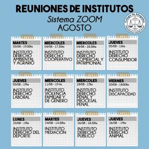 Institutos: Agenda de reuniones de agostoInformamos días y horarios de las reuniones que se llevarán a cabo utilizando el Sistema Zoom. Consultas: secretariaacademica@colegioabogadosazul.org.ar LEER MÁS |