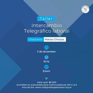 Se realizará el taller “intercambio telegráfico laboral”La actividad se llevará a cabo el próximo 3 de diciembre desde las 16 hs en modalidad virtual. Pueden encontrar el formulario de inscripción en la pestaña agenda. LEER MÁS |