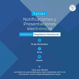 Se realizará un taller sobre notificaciones y presentaciones electrónicasLa actividad se realizará el 10 de diciembre a partir de las 16 hs en modalidad virtual por la plataforma de videoconferencias Zoom. Estará a cargo de Magdalena Mauhourat. LEER MÁS |