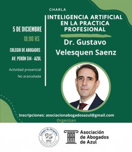 Nueva actividad sobre inteligencia artificial en la práctica profesionalSe trata de una charla con el Dr. Gustavo Velesquen Saenz, quien se presentará en la sede del Colegio el próximo 5 de diciembre a las 18 hs. LEER MÁS |