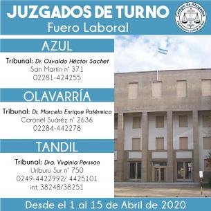 Juzgados de Turno desde el 1 al 15 de abril de 2020