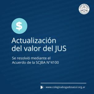 Actualización del valor del JUSSe definió a raíz del Acuerdo de la SCJBA N° 4100, donde se establece el nuevo valor del jus desde el 1° de marzo en la suma de $8.529, a partir del 1° de mayo en $8.955 y desde el 1° de julio en $9.950. LEER MÁS |