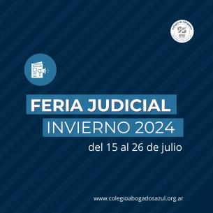Feria Judicial de Invierno 2024Mediante Acuerdo Nº 4152 la SCBA estableció el período de feria del 15 al 26 de julio del corriente año. A su vez, designó las Cámaras de Apelación que, en cada fuero, atenderán las causas que requieran habilitar su intervención. En ese marco, dispuso el esquema y cronograma para determinar los restantes organismos y magistrados que cubrirán el servicio en las fechas establecidas. LEER MÁS |