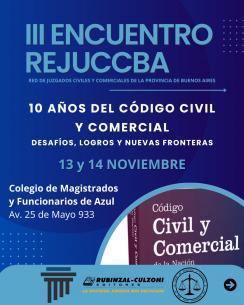 Se realizará el Tercer Encuentro de la Red de Juzgados Civiles y Comerciales de PBAEl Tercer Encuentro de la Red de Juzgados Civiles y Comerciales de la Provincia de Buenos Aires (REJUCCBA) se realizará el próximo 13 y 14 de noviembre de 2025, en la sede del Colegio de Magistrados y Funcionarios del Departamento Judicial Azul, ubicado en Av. 25 de Mayo 933, Azul. LEER MÁS |