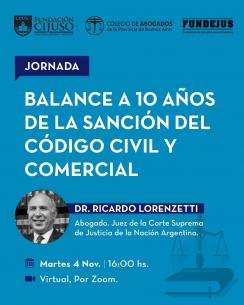El Dr. Lorenzetti estará a cargo de una charla a 10 años de la sanción del código civil y comercialEl encuentro es organizado por la Fundación Cijuso y se realizará de manera virtual el martes 4 de noviembre a las 16 hs. LEER MÁS |