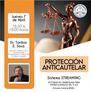 Charla: “Protección anticautelar”El Dr. Toribio Sosa,Juez de Cámara Civil y Comercial del Departamento Judicial de Trenque Lauquen, brindará esta capacitación el jueves 7 de abril de 16:30 a 18 hs, vía Sistema Streaming. Podés inscribirte, completando el formulario online, haciendo click aquí. LEER MÁS |