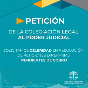 Información importante: Solicitud de COLPROBA al Poder JudicialEl Colegio de Abogados de la Provincia de Buenos Aires solicita al Poder Judicial una mayor celeridad en la resolución de todas las peticiones dinerarias pendientes ante la preocupante situación económica actual. LEER MÁS |