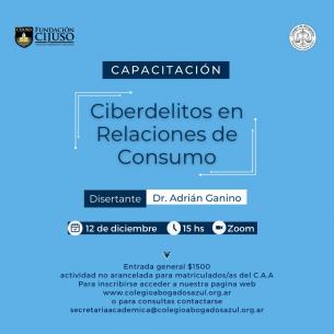 Capacitación del C.A.A. sobre Ciberdelitos en relaciones de consumoEl Colegio de Abogados Departamental y la Fundación CIJUSO han organizado una capacitación sobre ciberdelitos en relaciones de consumo. La propuesta está a cargo del Dr. Adrian Ganino y se realizará el 12 de diciembre de manera remota a través del sistema Zoom. LEER MÁS |