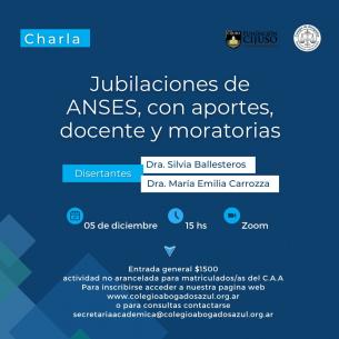 Charla sobre Jubilaciones de ANSES a cargo de las Dras. Ballesteros y CarrozzaEl próximo martes 5 de diciembre se llevará a cabo en modalidad virtual el mencionado encuentro que abordará los principales aspectos respecto de las jubilaciones. Estará a cargo de las Dras. Silvia Ballesteros y María Emilia Carrozza LEER MÁS |