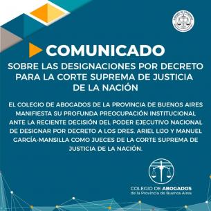 Comunicado de COLPROBA ante las designaciones en la CSJNCOLPROBA manifesta su preocupación ante la decisión del Poder Ejecutivo Nacional de designar por decreto a los Dres. Lijo y Garcia-Mansilla como jueces de la SCJN. LEER MÁS |