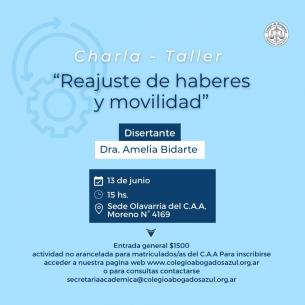 Se realizará la charla-taller Reajuste de haberes y movilidad en las subsedes del C.A.A.Durante el mes de junio la Dra. Amelia Bidarte viajará a Tandil y Olavarría para dialogar con colegas de dichas localidades respecto de la base constitucional y los criterios de la C.S.J.N sobre movilidad jubilatoria. LEER MÁS |