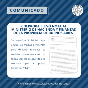 COLPROBA elevó nota al Ministerio de Hacienda y Finanzas de la Provincia de Buenos AiresSe requirió al Sr. Ministro que arbitre los medios pertinentes para disponer refuerzos de créditos presupuestarios en forma urgente de acuerdo a lo solicitado por el propio Ministerio Público. LEER MÁS |