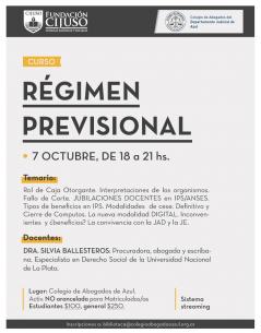 El próximo lunes 7/10 se dictará el curso "Régimen Previsional"