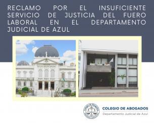 Reclamo por el insuficiente servicio de justicia del fuero laboral en el Departamento Judicial de AzEl Consejo Directivo del Colegio de Abogados Departamental, elevó una nota al Presidente de la Suprema Corte de Justicia de la Provincia de Buenos Aires, Dr. Daniel Soria; a los fines de hacerle conocer la grave preocupación de los más de mil quinientos colegiados/as del departamento judicial Azul, por el insuficiente servicio de justicia del fuero laboral en las ciudades de Azul, Olavarría y Tandil, y consecuentemente pedido del restablecimiento pleno, concreto y efectivo de este servicio público esencial. LEER MÁS |