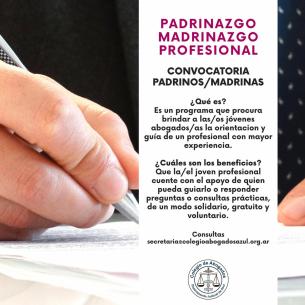 Programa de Padrinazgo/Madrinazgo ProfesionalComienza a implementarse este programa que procura brindar a las/os jóvenes abogadas/os la orientación y guía de un/a profesional con mayor experiencia. LEER MÁS |