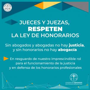 Jueces y juezas, respeten la ley de honorariosLos presidentes y presidentas de todos los Colegios de Abogados departamentales de la provincia de Buenos Aires que suscriben al pie, reunidos en pleno en el Consejo Superior hacen saber que: LEER MÁS |