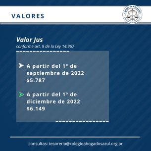 Valor del Jus ArancelarioEstablecido mediante el Acuerdo N° 4083 de la SCBA. LEER MÁS |