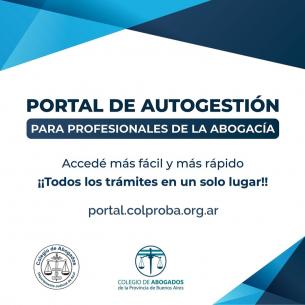 Nuevo Portal de Autogestión para profesionales de la abogacíaYa está habilitado el Portal de Autogestión para matriculadas y matriculados del Colegio de Abogados de la Provincia de Buenos Aires. Una herramienta digital ágil, innovadora, de fácil acceso y uso; para estar constantemente informados facilitando el ejercicio de la abogacía. LEER MÁS |