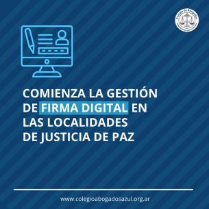Gestioná tu Firma Digital en las localidades de Justicia de PazA partir de febrero, personal del Colegio de Abogados Departamental viajará especialmente a cada una de las localidades del Departamento Judicial para facilitar a las abogadas y abogados la gestión de su firma digital. LEER MÁS |