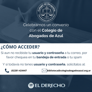 Nueva herramienta para todos los matriculados del CAAEl Colegio de Abogados de Azul, en convenio con IJ International Legal Group S.A., pone a disposición de sus matriculados acceso gratuito por 12 meses a la plataforma de búsqueda jurídica El Derecho + Legister. LEER MÁS |