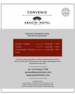 Importantes beneficios en alojamiento en el Abasto Hotel Buenos AiresA partir de la firma de este convenio, matriculados/as del C.A.A. podrán contar con la posibilidad de acceder a descuentos especiales al momento de alojarse en las instalaciones del Abasto Hotel Buenos Aires. LEER MÁS |