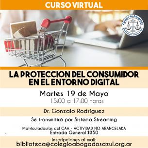 Charla: “La protección del consumidor en el entorno digital”El Dr. Gonzalo Rodríguez disertará sobre esta temática el martes 19/05 de 15 a 17hs, vía streaming. Esta capacitación, organizada por el Colegio de Abogados Departamental y Fundación CIJUSO, es no arancelada para matriculadas y matriculados. Se entregarán certificados de asistencia. Inscripciones. biblioteca@colegioabogadosazul.org.ar LEER MÁS |