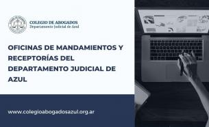Contactos de Oficinas de Mandamientos y ReceptoríasCompartimos teléfonos y mails para facilitar el ejercicio profesional de abogadas y abogados en el Departamento Judicial de Azul. LEER MÁS |