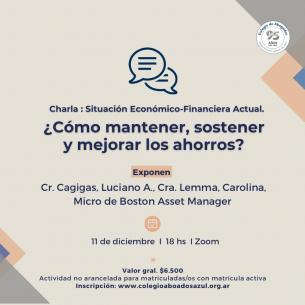Nueva charla sobre la situación económica-financiera actual: ¿Cómo mantener, sostener y mejorar losEl próximo 11 de diciembre los contadores Luciano Cagigas y Carolina Lemma llevarán adelante una charla vinculada a economía y actualidad. La actividad se realizará modalidad virtual, a las 18 hs. LEER MÁS |