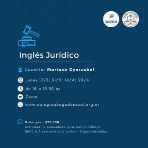 Nueva capacitación sobre inglés jurídico en el ColegioComenzará el 17 de marzo y estará a cargo de Mariana Oyarzabal. La capacitación se extenderá hasta el 28 de abril. Será desde las 18 a las 19.30 hs en modalidad virtual. LEER MÁS |