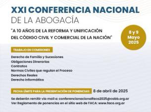 Conferencia Nacional de la Abogacía en Bahía BlancaEl evento es organizado por FACA en colaboración con el Colegio de Abogados de Bahía Blanca y se realizará los próximos 8 y 9 de mayo. LEER MÁS |