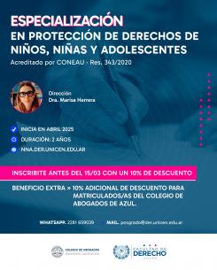 Preinscripción a Posgrados de la Facultad de Derecho de la UNICEN con descuentosMatriculados/as del Colegio pueden acceder a las propuestas con un 10% de descuento. También pueden acceder a un 10% de descuento adicional si se inscriben antes del 15 de marzo. LEER MÁS |