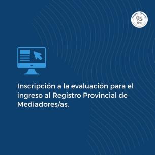 Inscripción a la evaluación para el ingreso al Registro Provincial de Mediadores/asEl Ministerio de Justicia y DDHH informa la convocatoria de los/as aspirantes para la inscripción a la evaluación prevista en la Ley N° 13.951 y su reglamentación aprobada por el DECRE-2021-600-GDEBAGPBA, para el ingreso al Registro Provincial de Mediadores y Mediadoras. LEER MÁS |