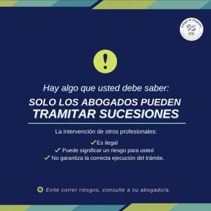 Solo los abogados pueden tramitar sucesionesLa intervención de otros profesionales es ilegal, puede significar un riesgo para usted, no garantiza la correcta ejecución del trámite. LEER MÁS |