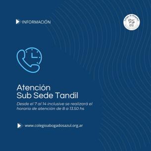 Horario de atención en la subsede de Tandil del C.A.A.Informamos a matriculados y matriculadas del Colegio que del 7 al 14 de junio, la subsede de Tandil estará a disposición de los/as profesionales en el horario de 8 a 13:50 hs. LEER MÁS |