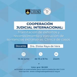 Nueva propuesta del Colegio: Capacitación sobre Cooperación Judicial InternacionalEl próximo 18 de junio la Dra. Eloísa Raya de Vera lleva adelante una clínica de casos respecto de la tramitación de exhortos y reconocimiento y ejecución de sentencias extranjeras. LEER MÁS |