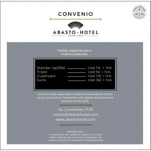 A partir de la firma de este convenio, matriculados/as del C.A.A. podrán contar con la posibilidad de acceder a descuentos especiales al momento de alojarse en las instalaciones del Abasto Hotel Buenos Aires.
