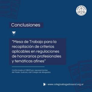 Conclusiones del trabajo realizado en la comisión 8 de la Mesa de TrabajoA continuación, compartimos las conclusiones del trabajo que esta llevando adelante la “Mesa de Trabajo para la recopilación de criterios aplicables en regulaciones de honorarios profesionales y temáticas afines” conformada el 11 de agosto por representantes del Poder Judicial y del Colegio de Abogados. LEER MÁS |