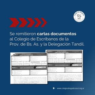 El Colegio expresó su posicionamiento ante el Colegio de Escribanos de la Pcia de Bs AsLo hizo mediante el envío de dos cartas documento: al Colegio de Escribanos de la Provincia de Buenos Aires y a la Delegación Tandil del mismo organismo. LEER MÁS |
