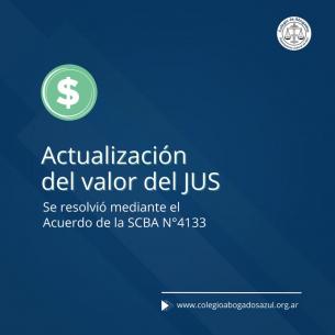 Actualización del valor del JUS aplicable a noviembreSe definió en el Acuerdo Nro 4133 de la SCBA. Allí se establece el nuevo valor del Jus desde el 1ro de noviembre en $15.636. Asimismo, se establece la readecuación del Jus arancelario decreto-ley 9804/77 en $10.686 desde el 1ro de noviembre. LEER MÁS |