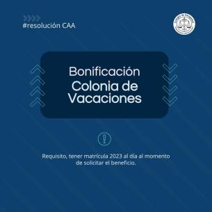 Bonificación para Colonias de VacacionesEl Consejo directivo del C.A.A., con fecha 17 de octubre, resolvió bonificar por única vez, y por grupo familiar, la suma de pesos cinco mil ($5.000) a los/as matrículados/as que acrediten la concurrencia de sus hijos/as en Colonias de vacaciones de verano. LEER MÁS |