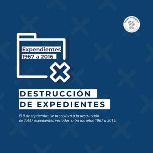 En Septiembre se llevará a cabo una nueva jornada de destrucción de expedientesEl 9 de septiembre a las 8 am se procederá a la destrucción de 7.447 expedientes iniciados entre los años 1967 a 2016 con plazos de guarda vencidos. LEER MÁS |
