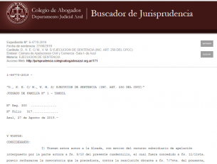 Nueva Jurisprudencia en materia de AlimentosCon fecha 27 de Agosto de 2019, la Sala I de la Excma. Cámara de Apelación en lo Civil y comercial de Azul dictó sentencia interlocutoria en la causa “D., K. E. C/ M., V. M. S/ EJECUCION DE SENTENCIA (INC. ART. 250 DEL CPCC)”(1-64770-2019)en materia de alimentos adeudados, intereses punitorios, tasa adicional prevista por el art. 552 del Código Civil y Comercial de la Nación. LEER MÁS |