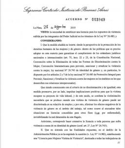 SCBA: Fue incorporada la licencia por violencia de género en la Justicia provincialDesde el Archivo Departamental Azul se informó que el día 31 de Octubre de 2019 a las 10.00 horas –en cumplimiento de la Resolución Nº 1721/19 SCBA- se procederá a efectuar la destrucción de expedientes penales (en los términos del art. 115 de la Acordada 3397/08 S.C.J.B.A), iniciados entre los años 1987 a 2013 pertenecientes a los Tribunales Orales en lo Criminal Nros. 1 y 2, Juzgado Correccional Nros. 1 y 2 y de Ejecución Penal Nº 1, todos del Departamento Judicial de Azul. LEER MÁS |