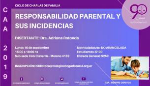 Continúa el Ciclo de Charlas de FamiliaEl lunes 16 de septiembre de 15 a 18hs, en la subsede del Colegio de Abogados Departamental de Olavarría (ubicada en calle Moreno 4169), la Dra. Adriana Rotonda disertará sobre “Responsabilidad parental y sus incidencias”. La actividad es no arancelada y se requiere inscripción previa por mail a: biblioteca@colegioabogadosazul.org.ar LEER MÁS |