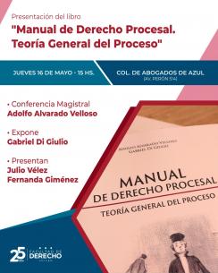 Presentación del libro “Manual de Derecho Procesal. Teoría General del Proceso”El evento se realizará el 16 de mayo a las 15 hs en la Sede del Colegio (Av. Perón 514). La conferencia magistral estará a cargo de Adolfo Alvarado Velloso. Además Gabriel Di Giulio realizará una exposición al respecto. La presentación estará a cargo de Maria Fernanda Giménez y Julio Vélez. LEER MÁS |